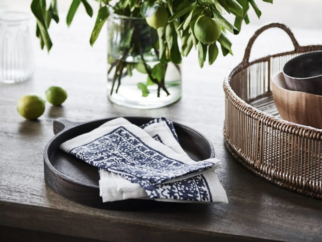 花瓶やオブジェを直接置かず、トレイにまとめることで、