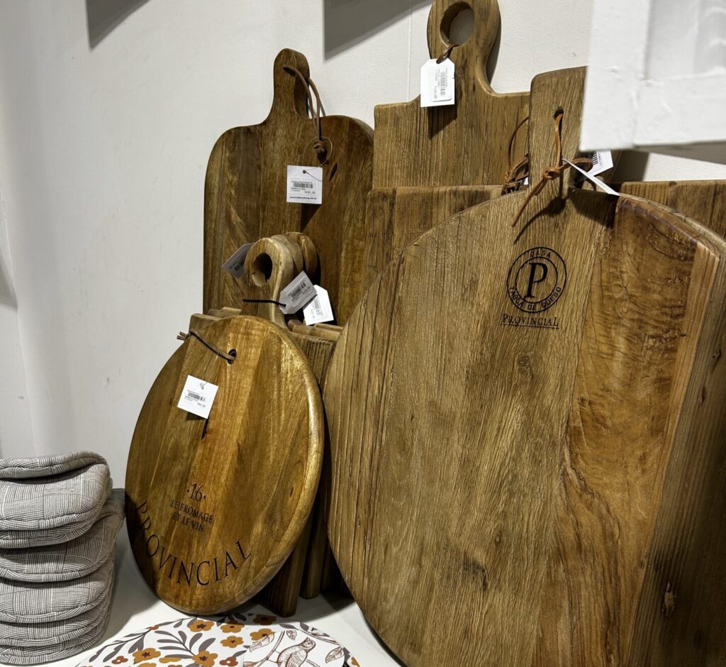 その代わり、数枚の自然素材のカッティングボードが、毎日の料理や盛り付けに欠かせない存在です。