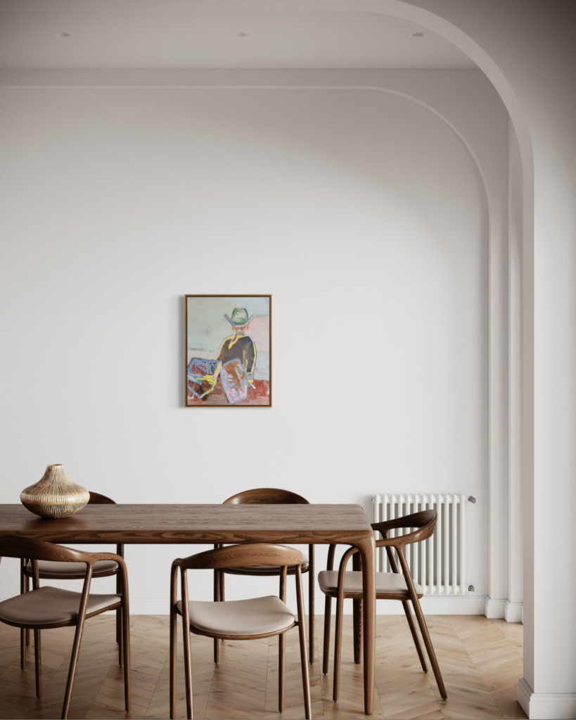 無垢材やリネンなど天然素材と組み合わせると、抽象表現が程よく馴染み、自然なリズムと軽やかさを生み出します。