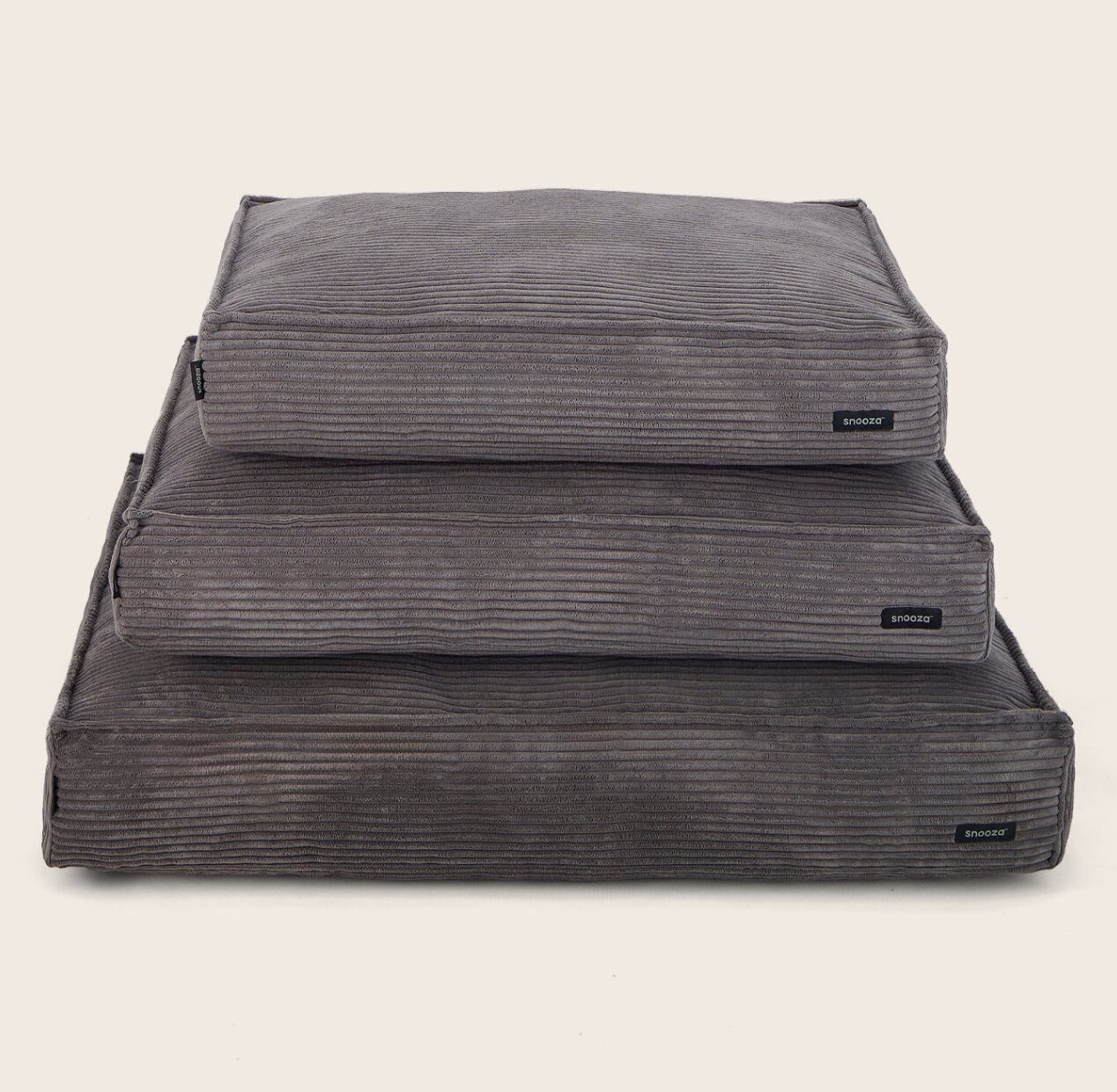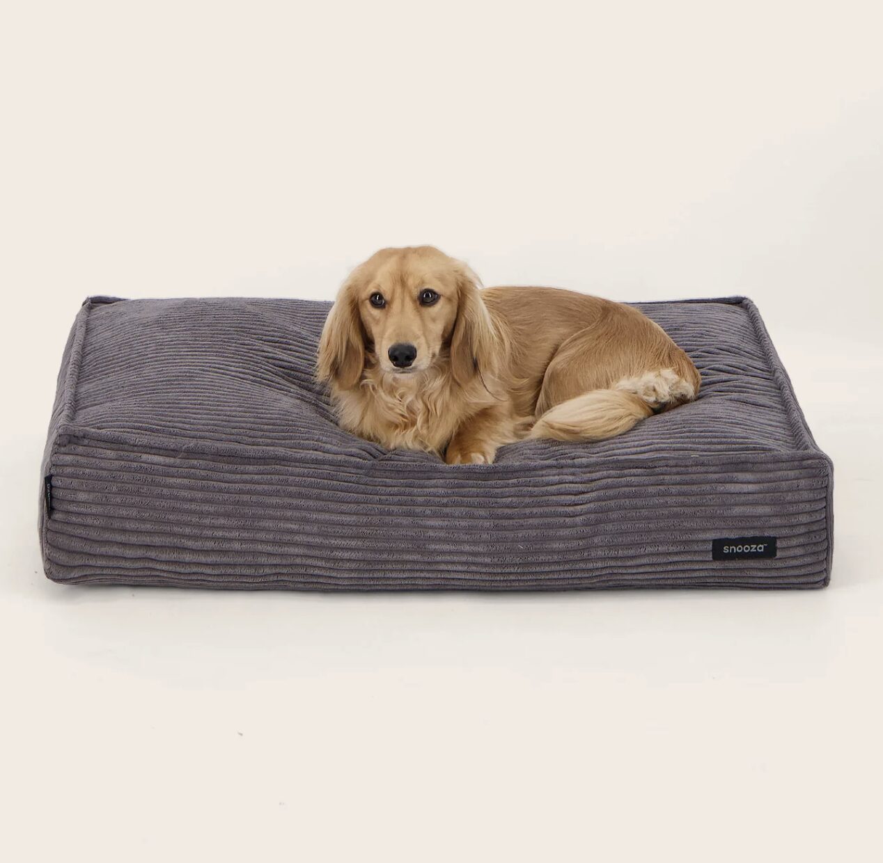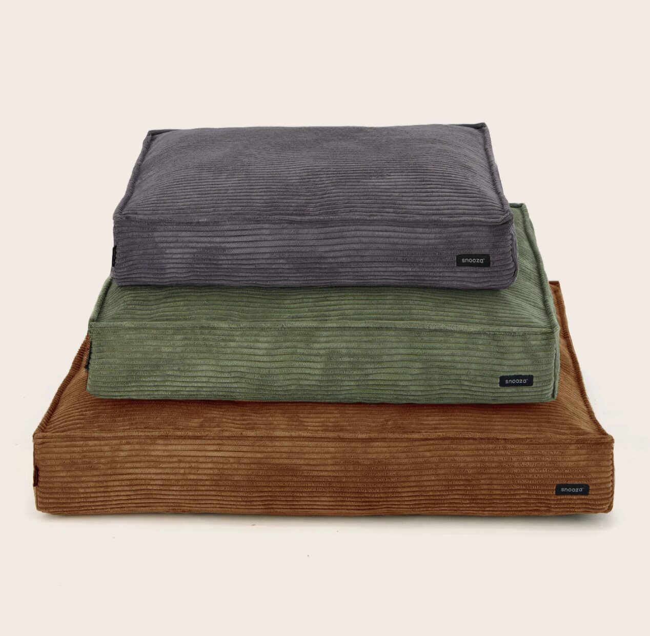 柔らかく暖かいコーデュロイ生地を使用した、シンプルで上質なスクエア型ドッグベッド。